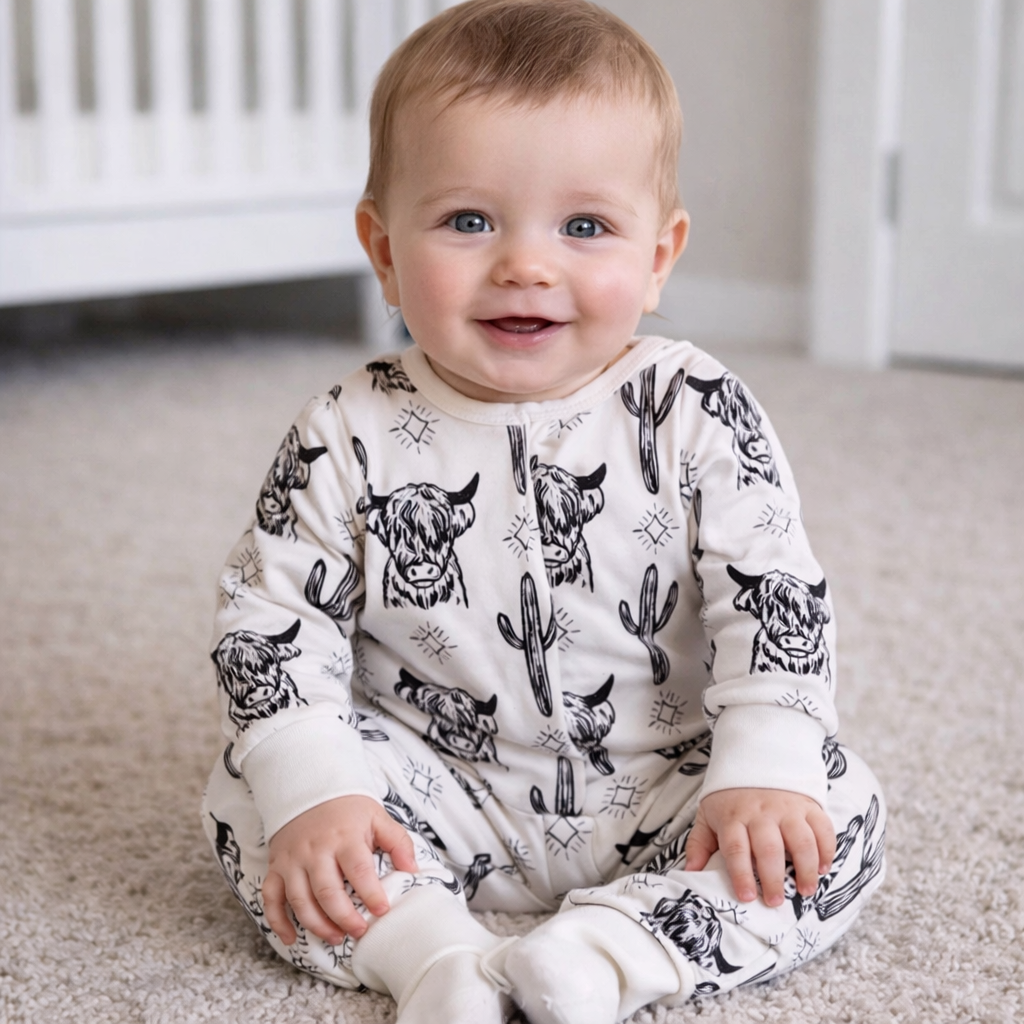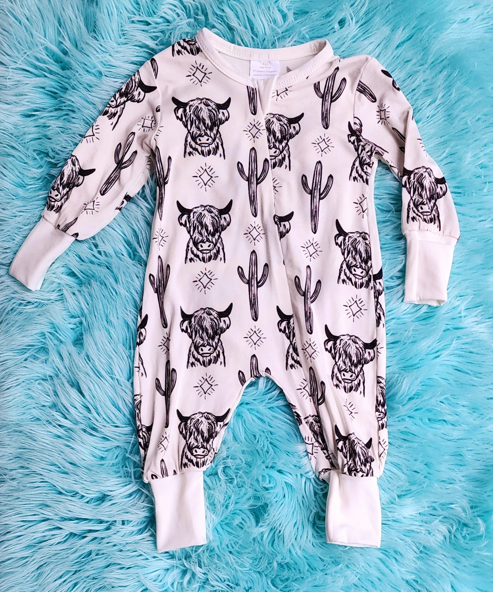 Bamboo sleeper with cactus and Highland cow and cactus.