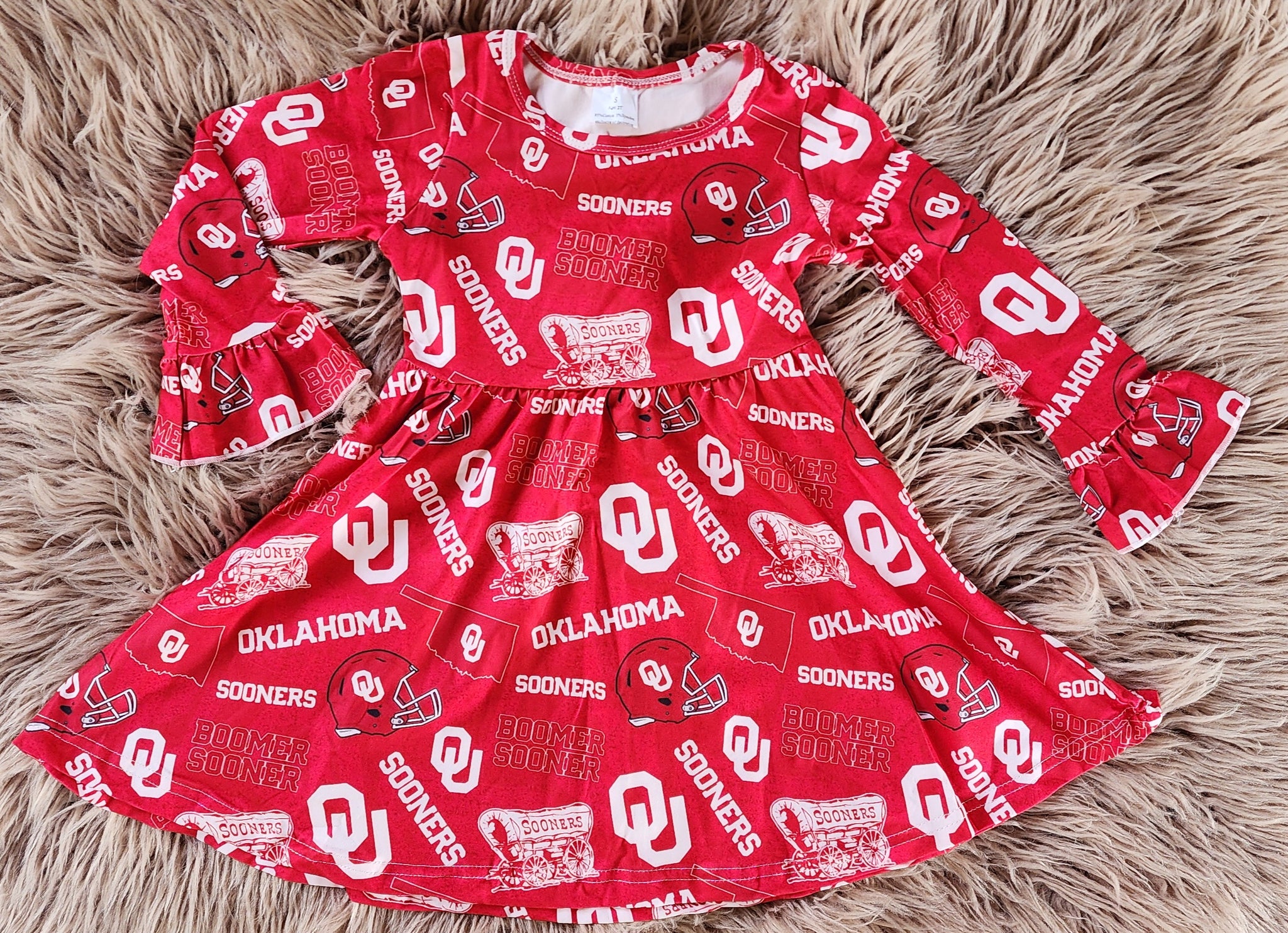 Girl's Oklahoma OU Sooners inspired long sleeve dress.
