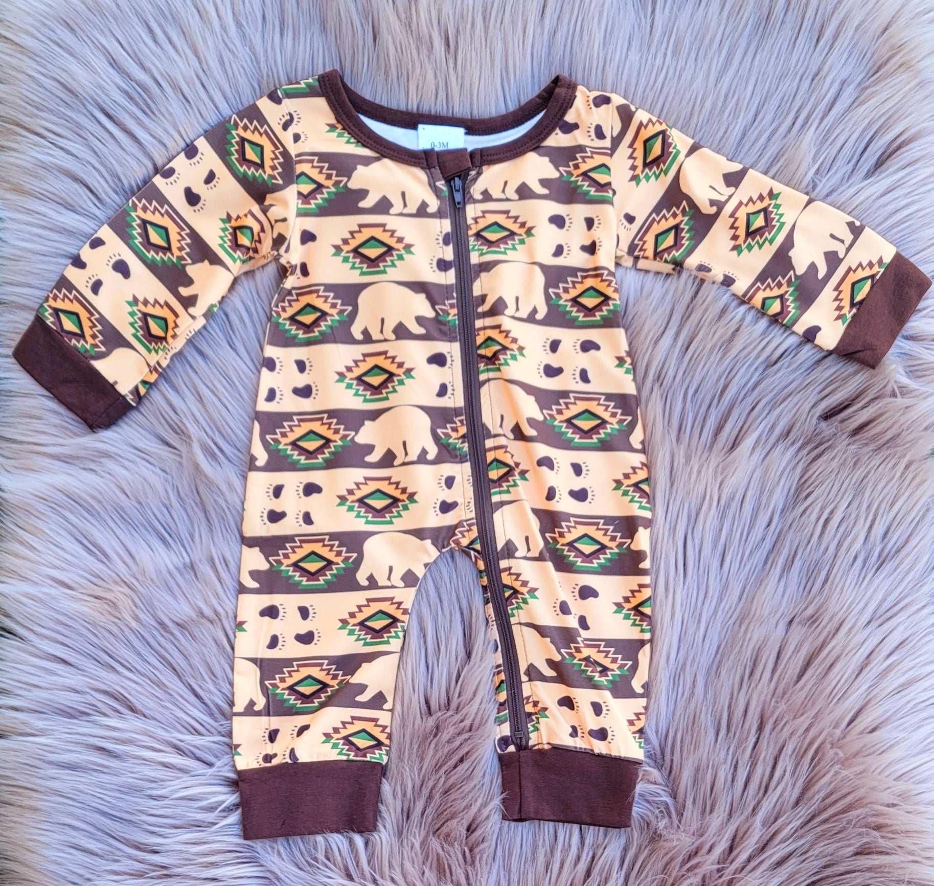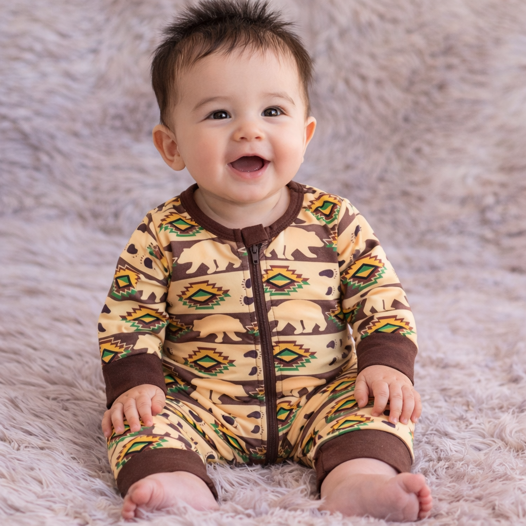 Baby zippered sleeper with bears and southwestern print.