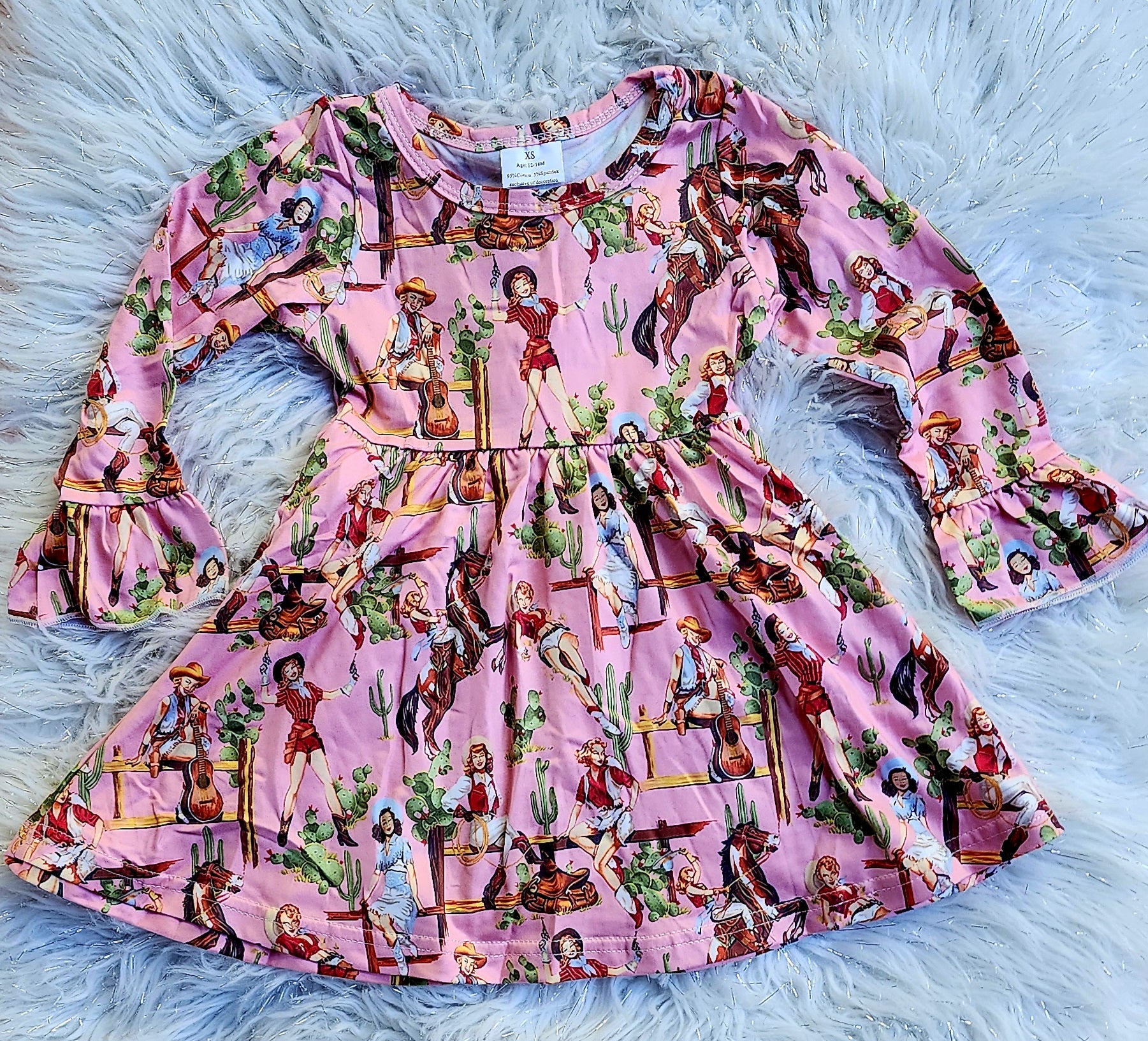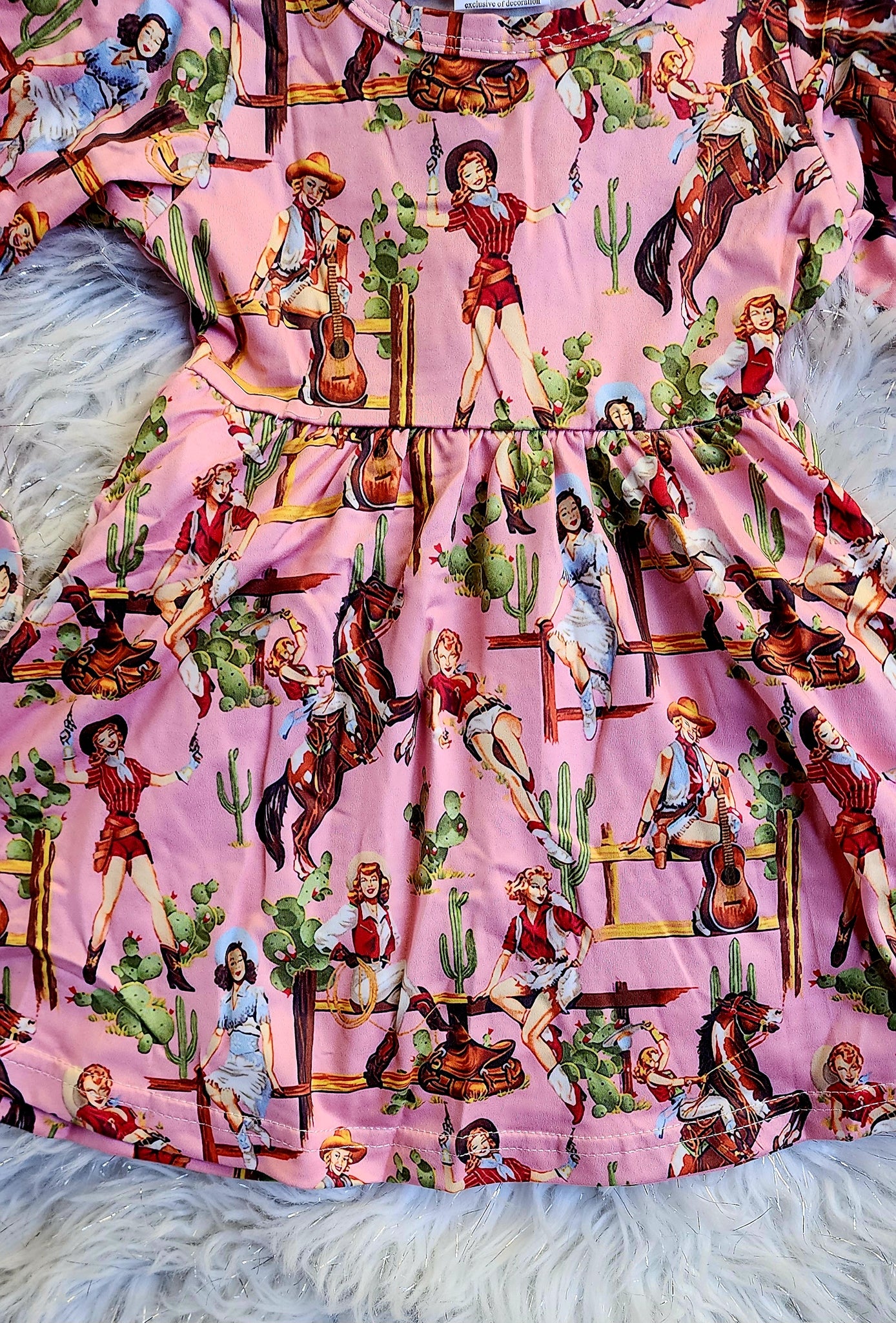 Girl's long sleeve pink dress with cowgirls.